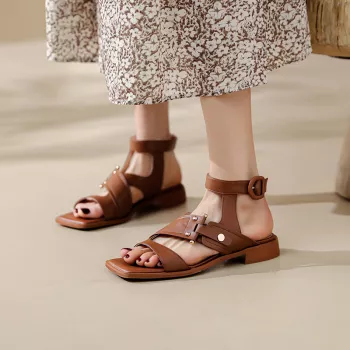 Genuine Cow Leather Gladiator Sandals for Women – Buckle Strap Summer Shoes