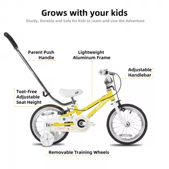 Lightweight 14 Inch Kids Bike with Training Wheels and Push Handle