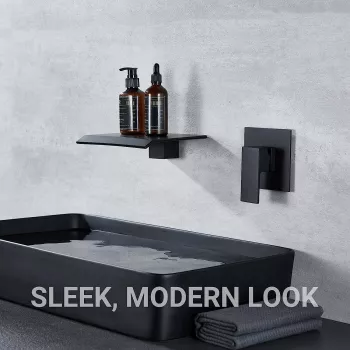 Wall Mounted Matte Black Waterfall Bathtub Faucet with Brass Shelf